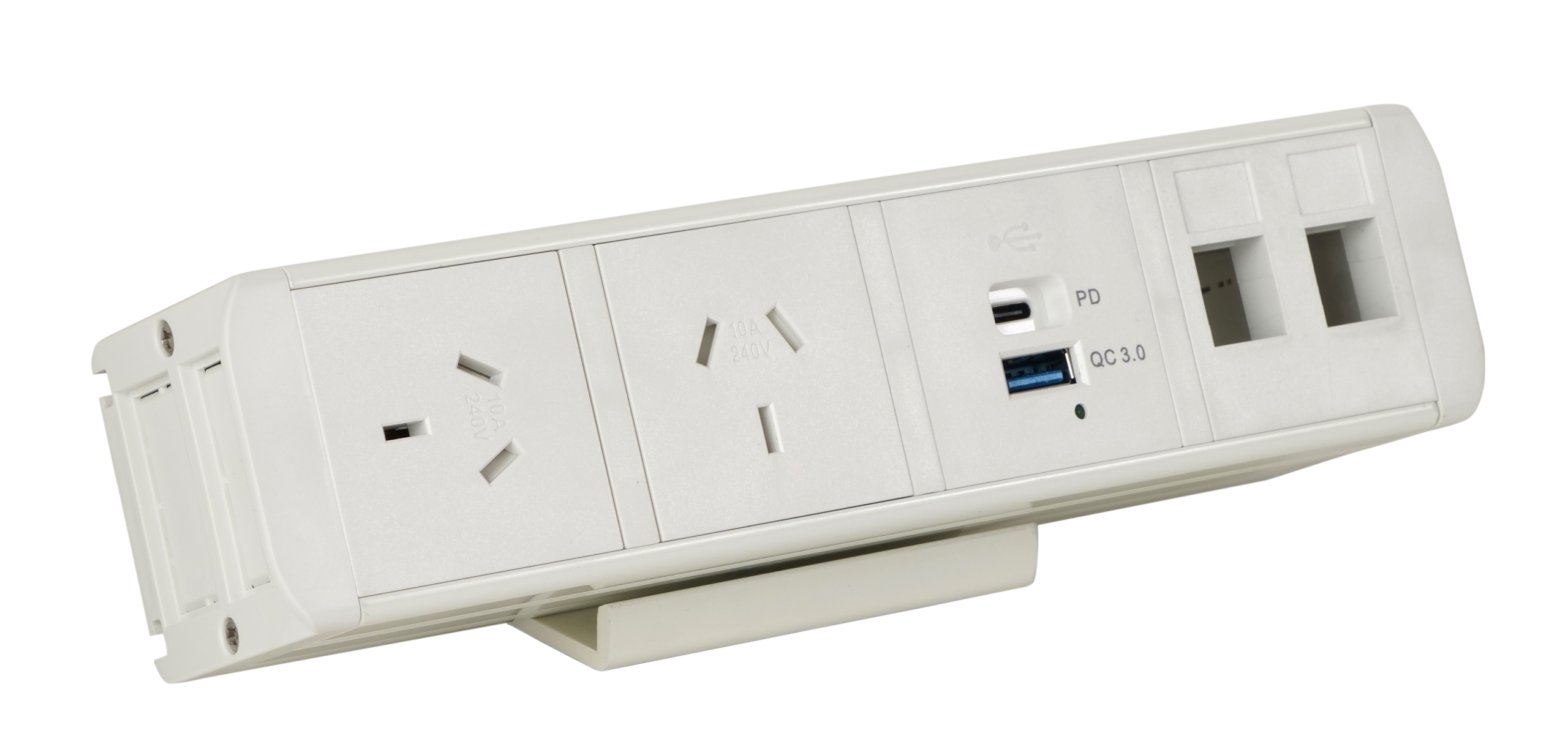 ■ Capacity 2 x GPO, USB A/C fast charger module (65W shared), and 2 x data mounts – suits Keystone Jacks.