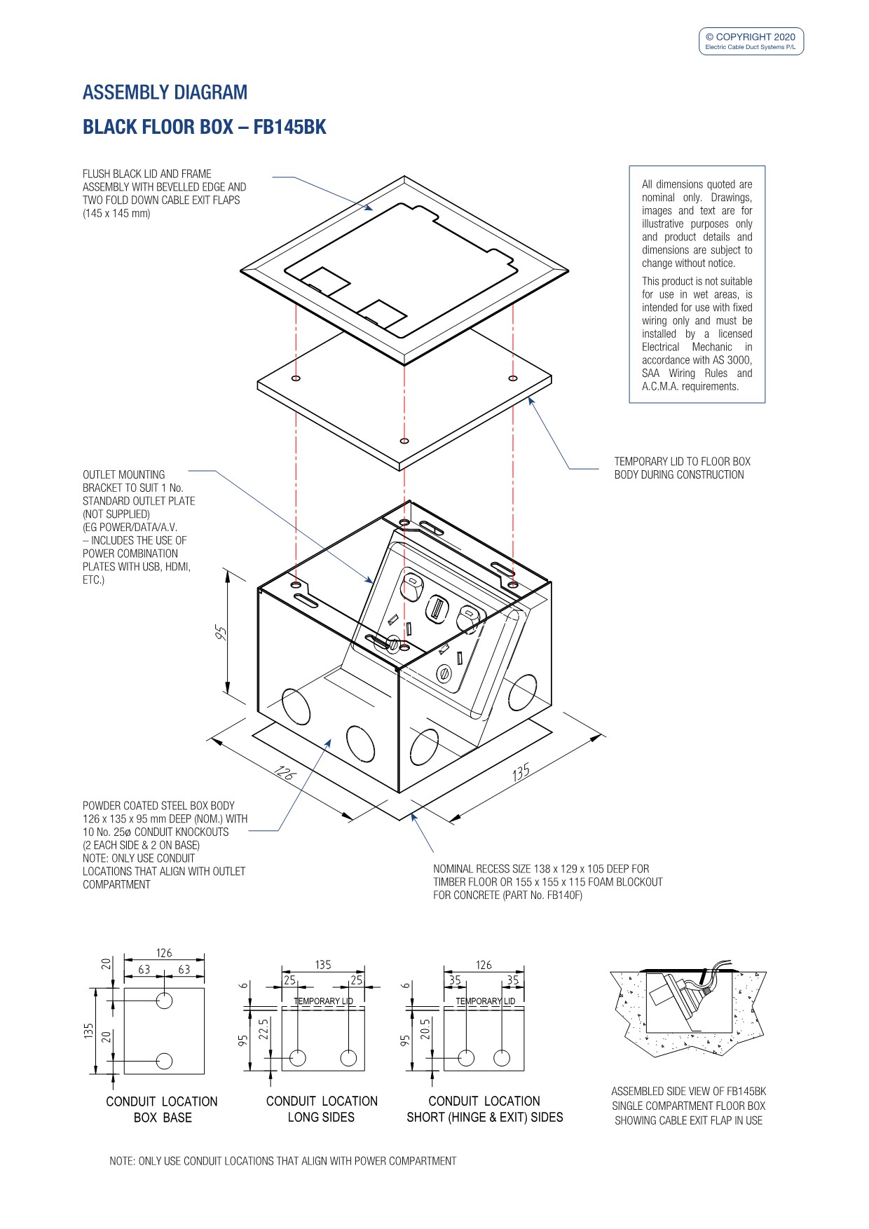 - Compact and stylish, the FB145BK Series of Flush Floor Boxes provide ready access to power and communication outlets recessed in the floor.