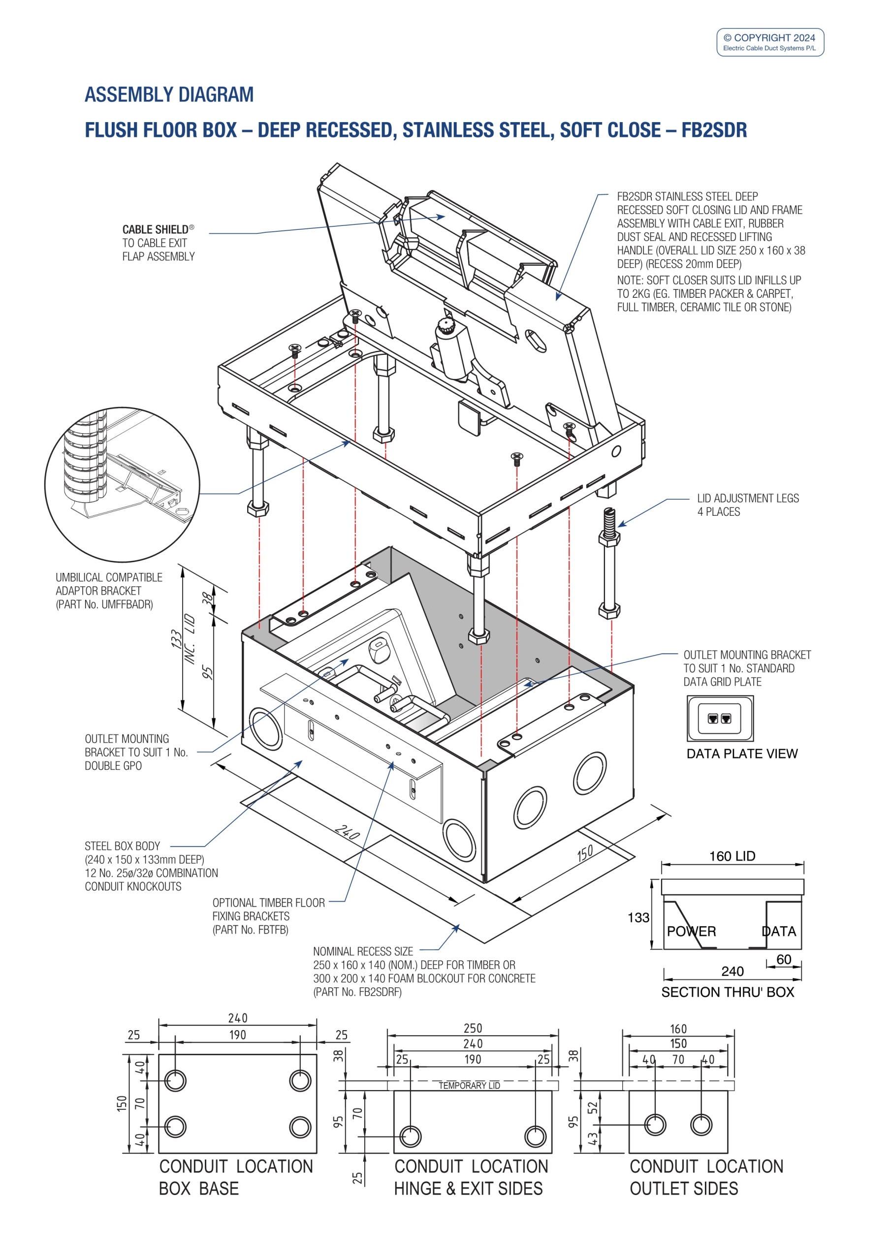 - Modular box body and lid design, interchangeable with plastic and other lids in the ECD® floor box range.
