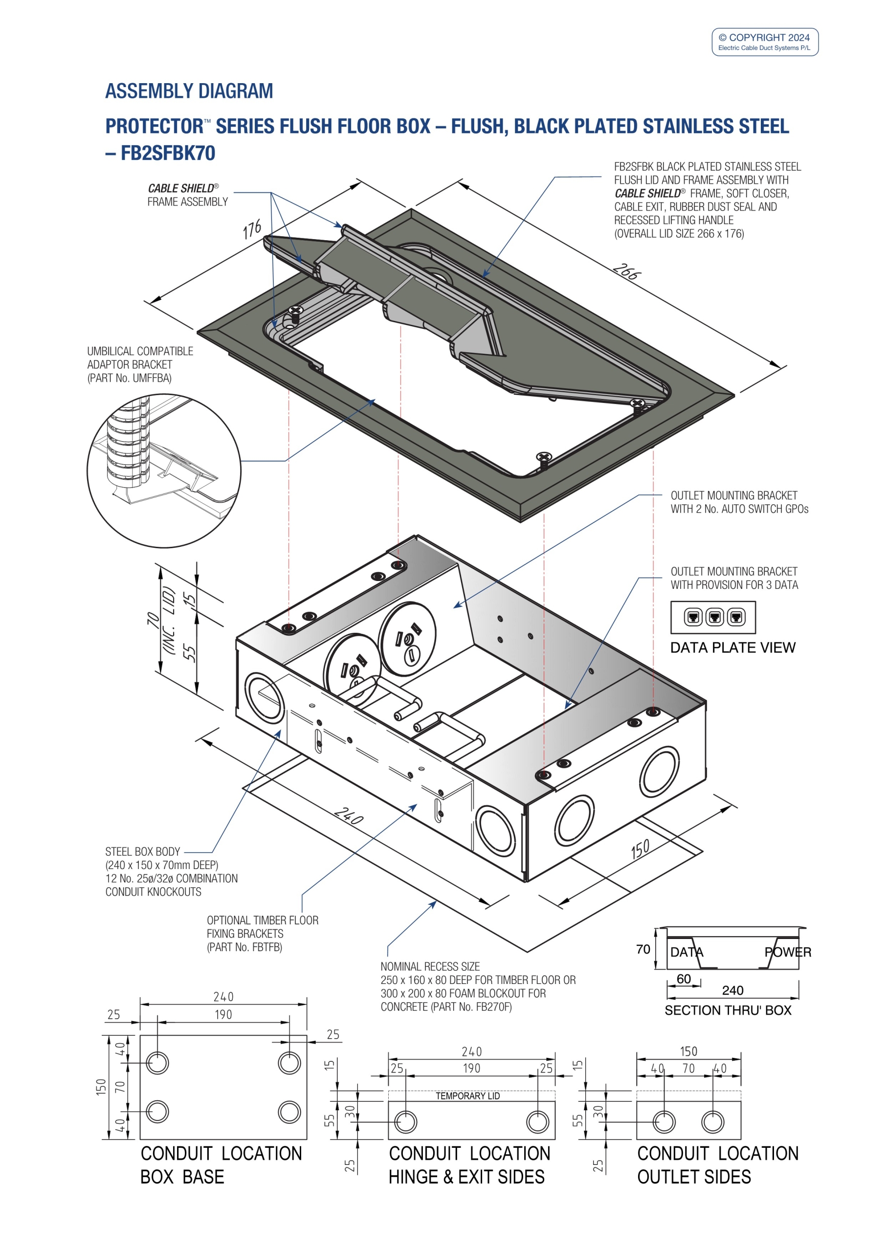 - Modular box body and lid design, interchangeable with plastic and other lids in the ECD® floor box range.