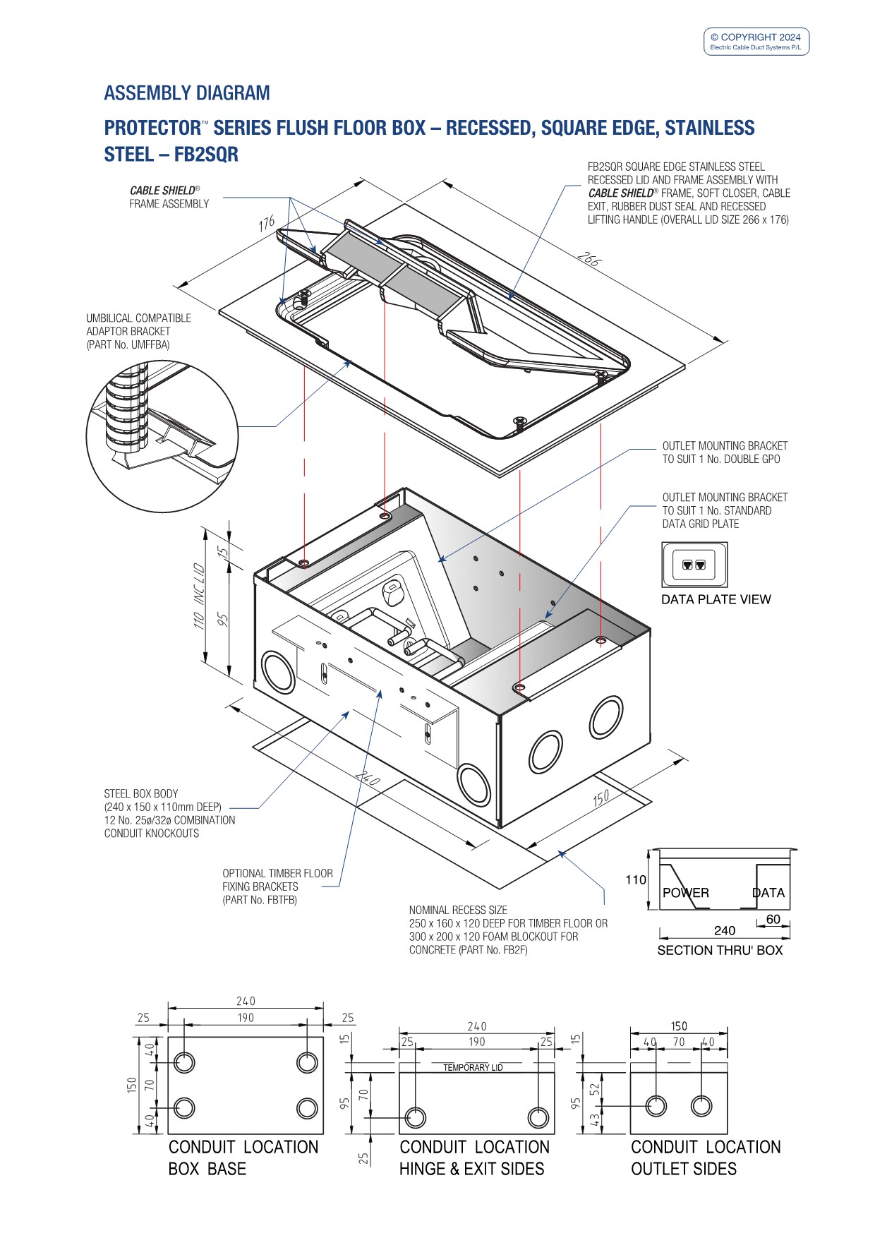 - Modular box body and lid design, interchangeable with plastic and other lids in the ECD® floor box range.