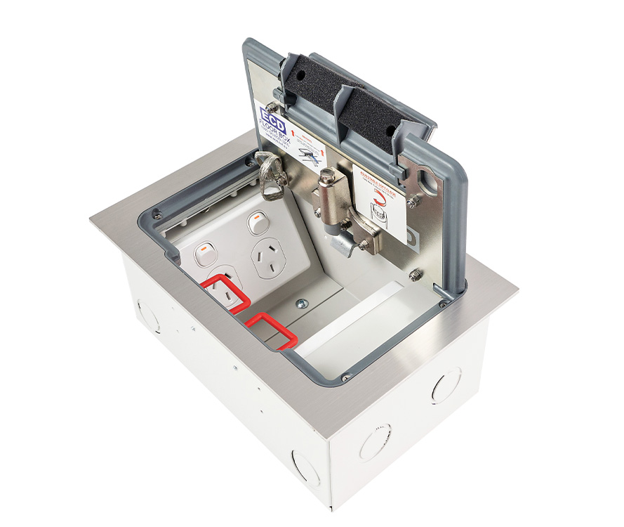- Capacity for 2 standard outlet plates (1 x double power & 1 x Data and/or A.V.)