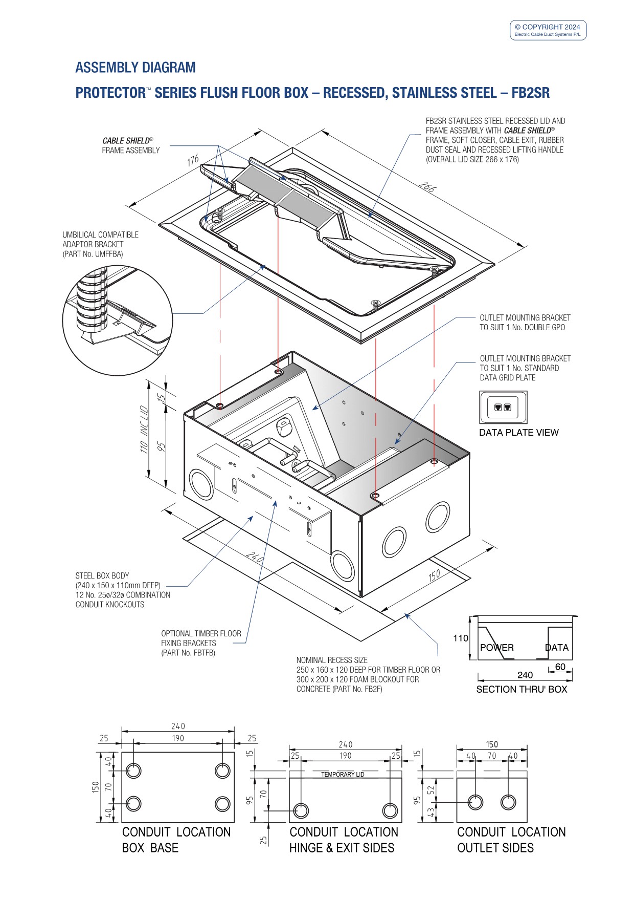 - Modular box body and lid design, interchangeable with plastic and other lids in the ECD® floor box range.