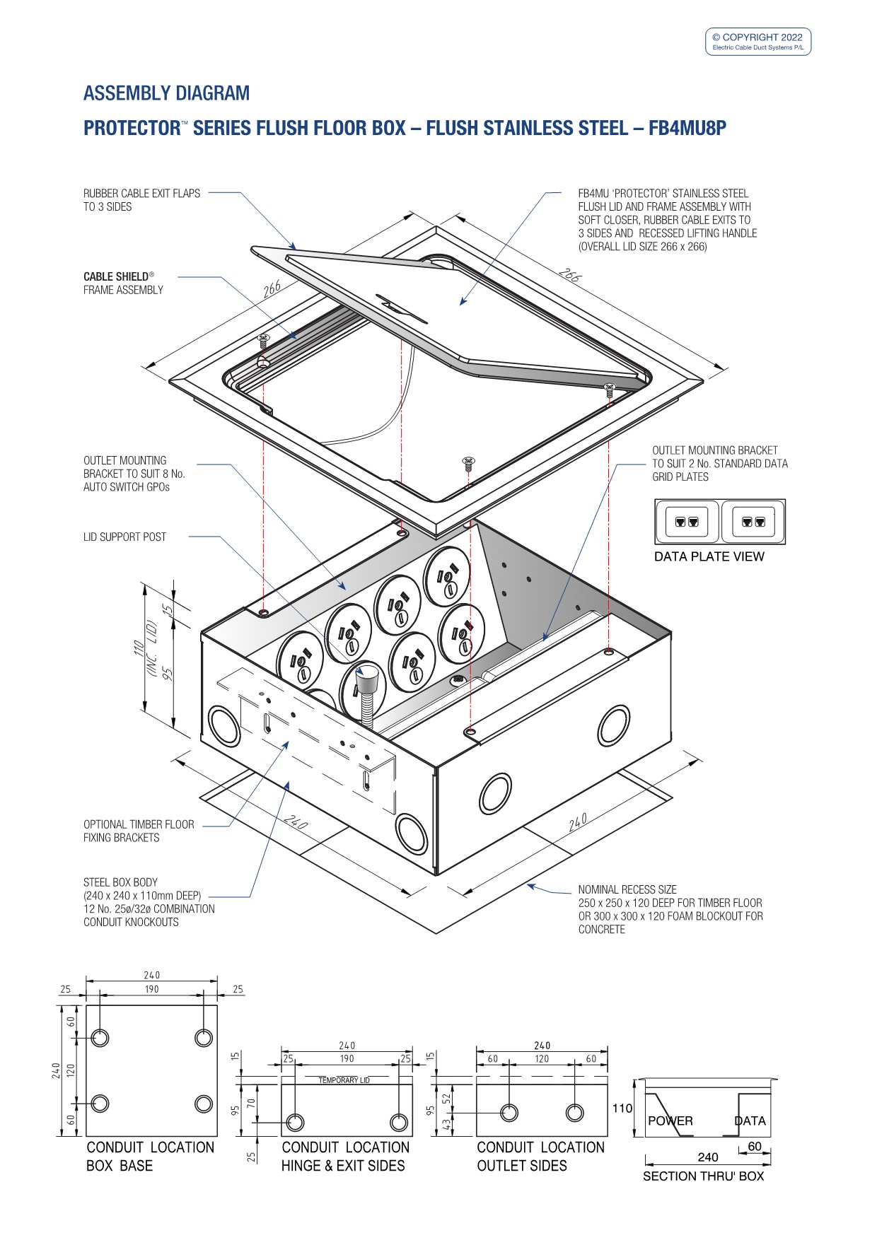 - Modular box body and lid design, interchangeable with plastic and other lids in the ECD® floor box range.