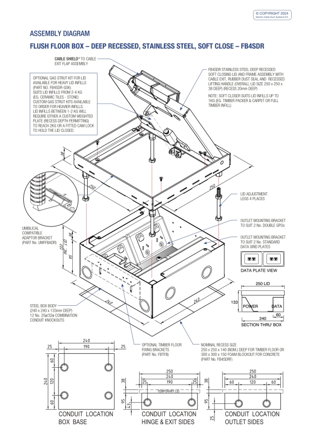 - Adjustable Soft Closer to control lid closure – suits floor finish inserts up to 1kg (eg. timber packer & carpet or full timber).