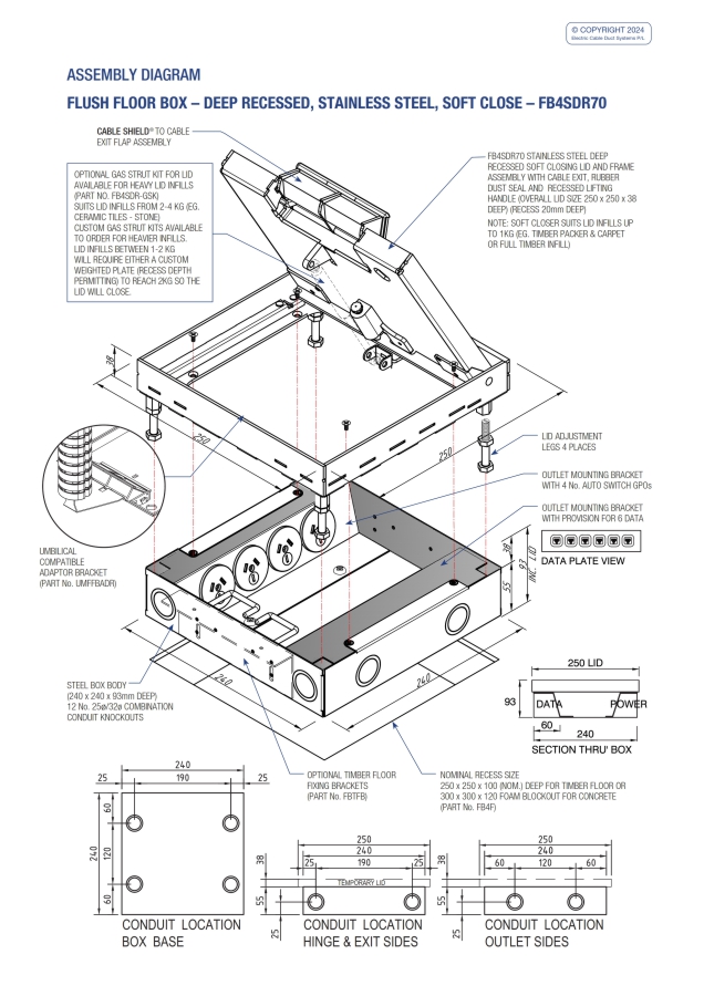 - Modular box body and lid design, interchangeable with plastic and other lids in the ECD® floor box range.