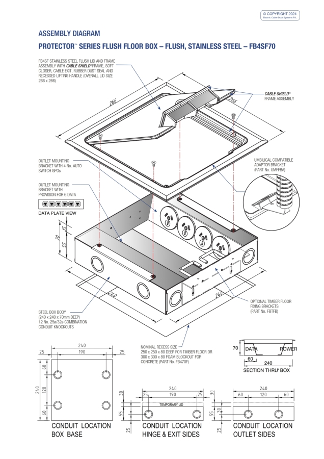 - Modular box body and lid design, interchangeable with plastic and other lids in the ECD® floor box range.