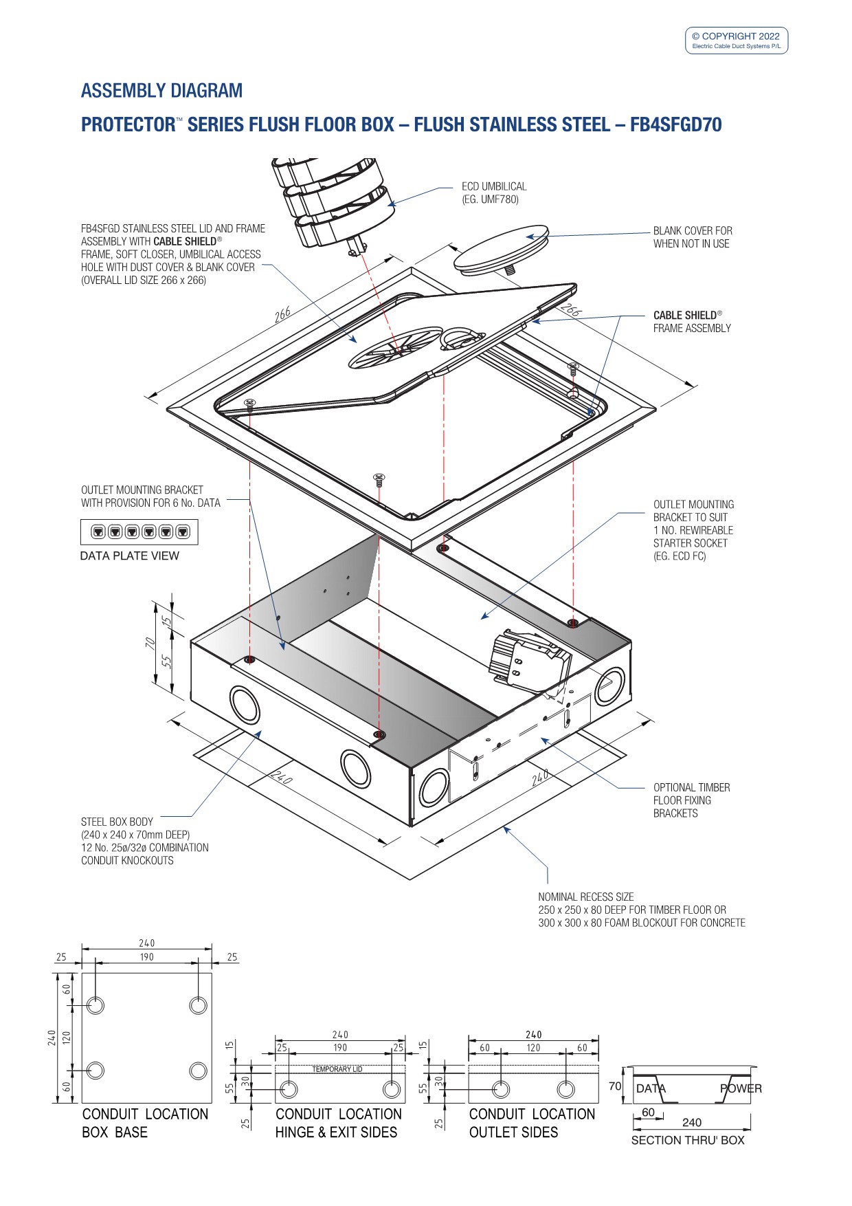 - Modular box body and lid design, interchangeable with plastic and other lids in the ECD® floor box range.