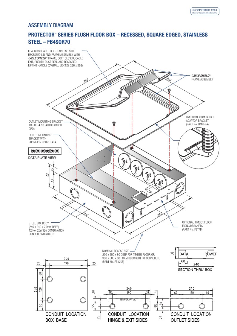 - Modular box body and lid design, interchangeable with plastic and other lids in the ECD® floor box range.