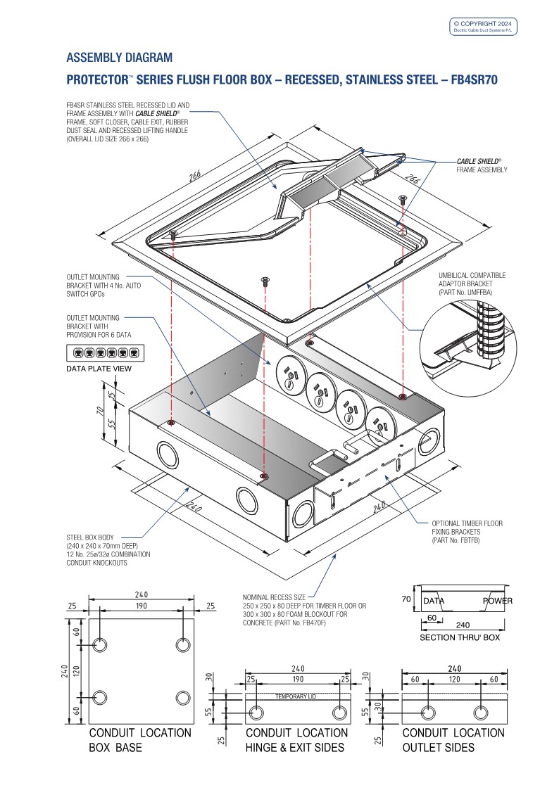 - Modular box body and lid design, interchangeable with plastic and other lids in the ECD® floor box range.