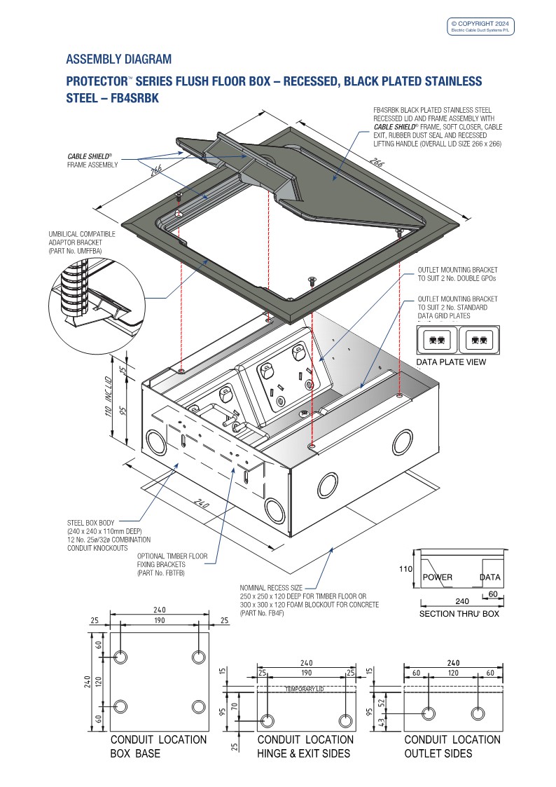 - Modular box body and lid design, interchangeable with plastic and other lids in the ECD® floor box range.