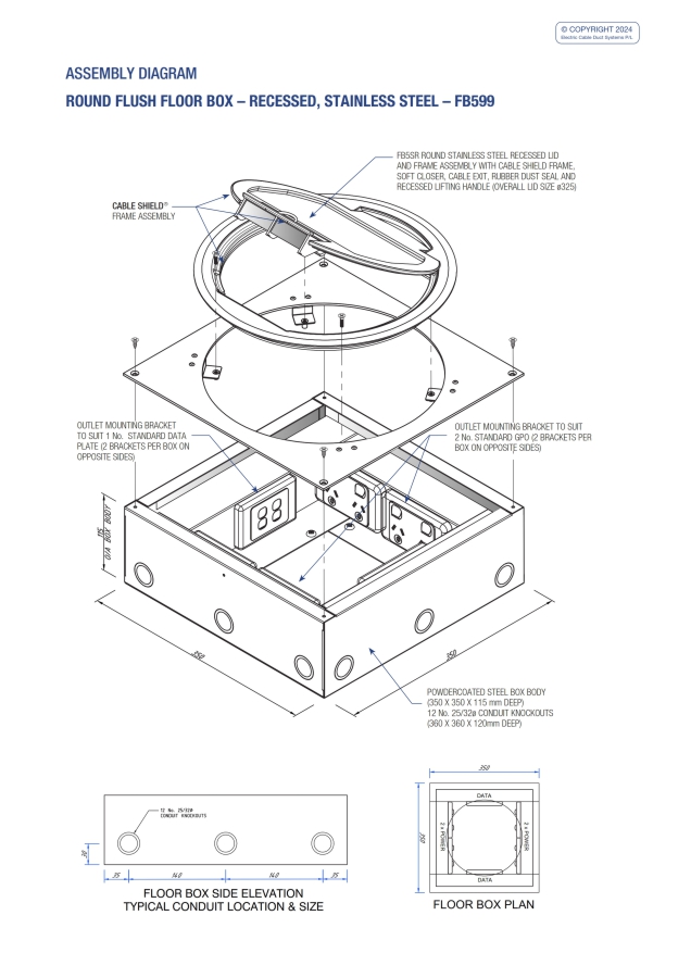 - Capacity for 6 standard outlet plates (typically 4 x double power and 2 x data, but this can be reversed).