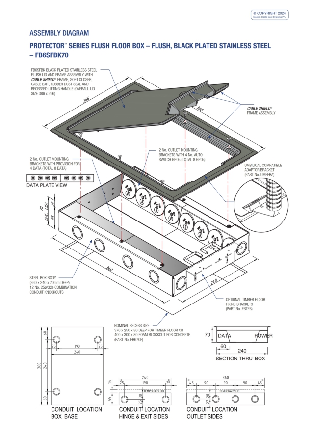 - Modular box body and lid design, interchangeable with plastic and other lids in the ECD® floor box range.