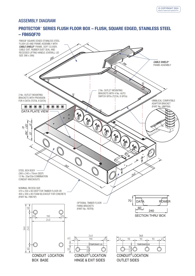- Modular box body and lid design, interchangeable with plastic and other lids in the ECD® floor box range.