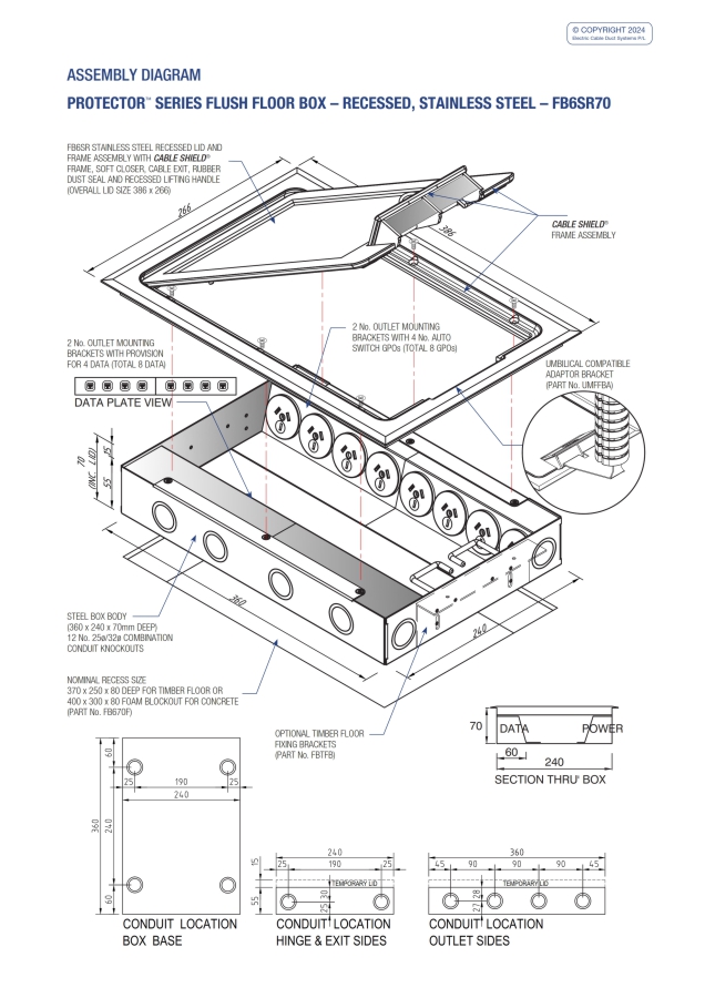- Modular box body and lid design, interchangeable with plastic and other lids in the ECD® floor box range.