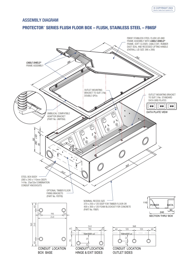 - Modular box body and lid design, interchangeable with plastic and other lids in the ECD® floor box range.